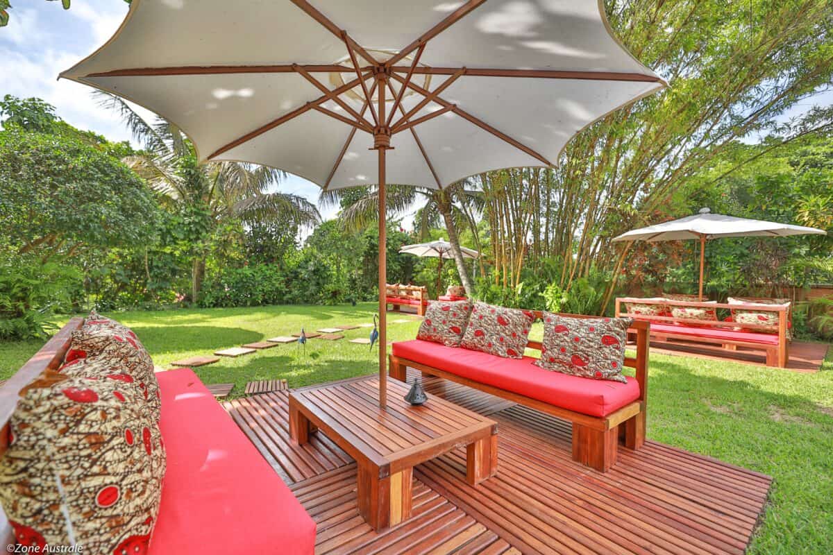 * Une Cafétéria pour les petits déjeuners Jardin extérieur avec salons